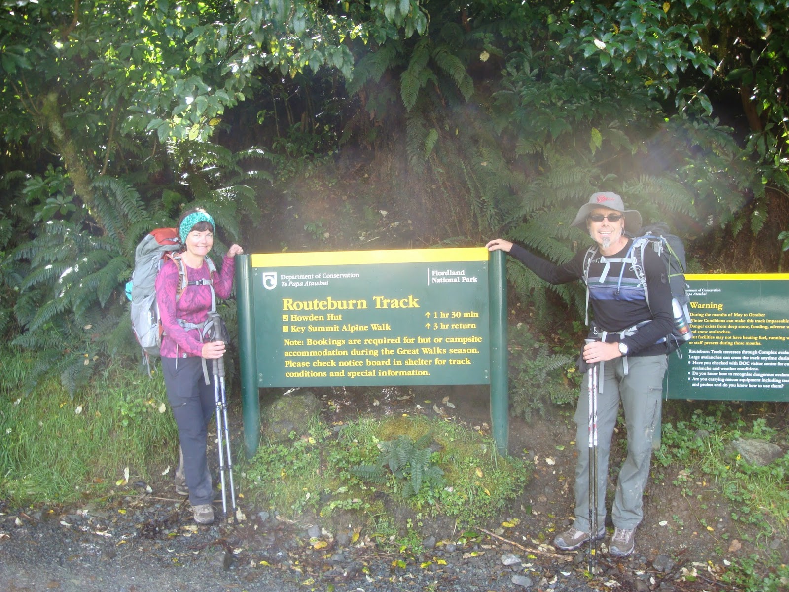 Then it was down, down and more down to The Divide - 45 minutes - arriving just before 1.30pm. Time for a quick clean of the boots and a snack before the "Tracknet" bus picked us up - on time. We arrived in Te Anau at 2.30 to find that we had a 2 hour stop-over there. We ate and napped until 4.30 until the next bus arrived from The Divide to pick us up. We were very surprised to find the Polish Walking Poles and the Kiwi contingent on the bus - Team United Nations had been reunited!!!